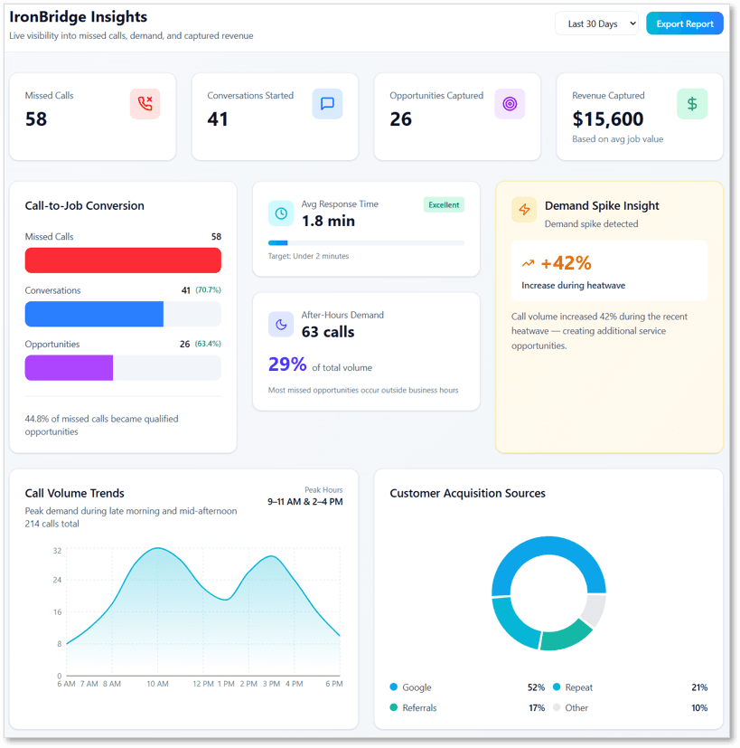 Start a 45-day pilot and see exactly how much missed revenue IronBridge can recover inside your HVAC business.